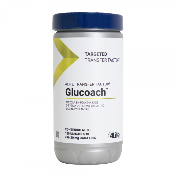 4Life Transfer Factor GluCoach está formulado para promover niveles saludables de glucosa en el cuerpo y ofrecer respaldo tanto al sistema endocrino como a los procesos metabólicos. Enriquecido con Targeted Transfer Factor y una mezcla exclusiva de ingredientes saludables, da respaldo a la capacidad de tu cuerpo para metabolizar la glucosa, lo cual mantiene niveles saludables de azúcar.*